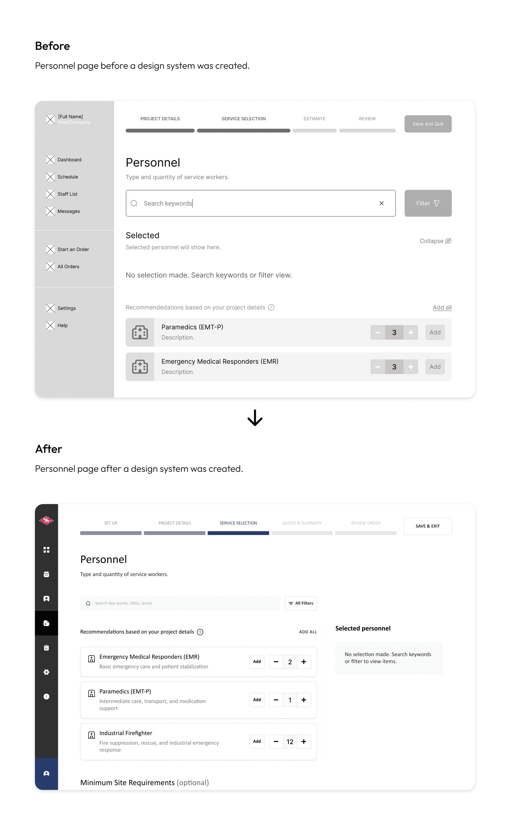 Based on this feedback, I proposed replacing the messaging feature with a system-wide activity log, refining the design system, and adding supporting text and icons where necessary.