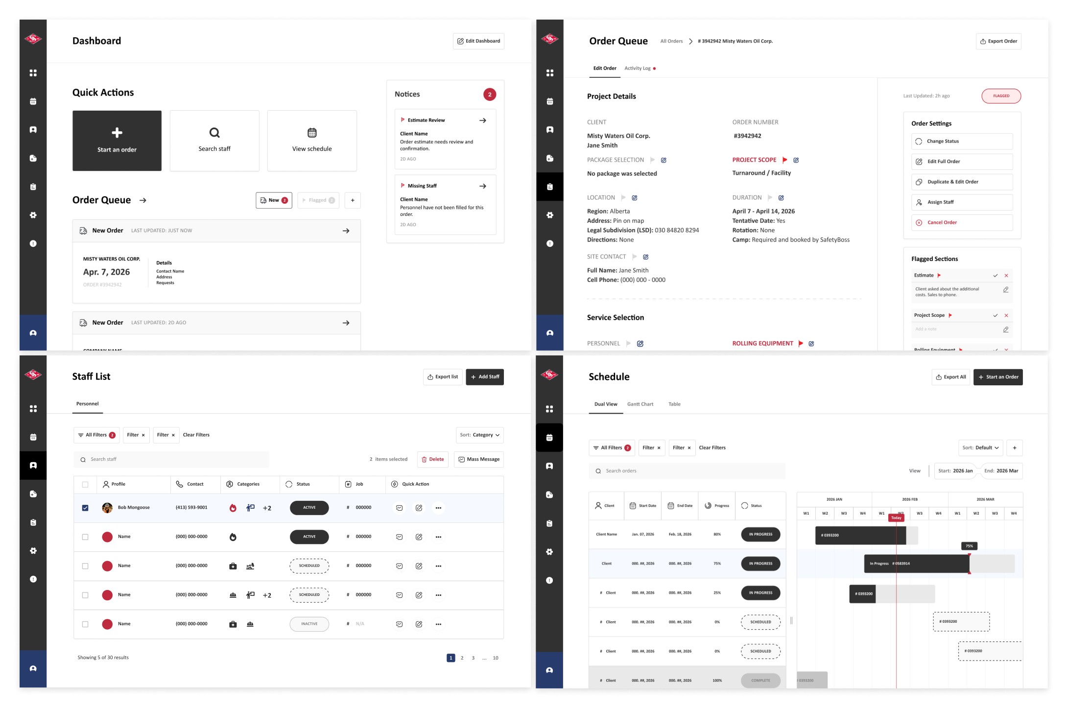 SafetyBossHub is a web application that allows customers to order services from SafetyBoss in a concise and straightforward manner. Internally, SafetyBossHub streamlines the order processing by collecting complete details at once and automating updates. This system relieves frustrations experienced by customers and dispatchers by centralizing information and reducing the number of communication tools to fulfill an order.